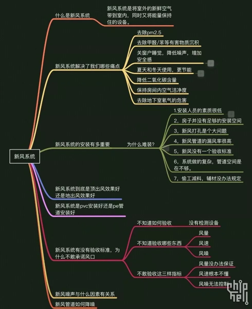 很多chher都在問新風(fēng)系統(tǒng)到底應(yīng)該怎么裝,怎么選,我看其中有很多動手能力強的chher在自己參與新風(fēng)的安裝,因為這似乎是唯一可以自己參與設(shè)計的為數(shù)不多的建材,因為其他很多建材專業(yè)性都很強,但是在新風(fēng)系統(tǒng)行業(yè)還存在著很多問題,譬如沒有專業(yè)的設(shè)計人員/沒有專業(yè)的施工人員/沒有專業(yè)的打孔人員/沒有整套的施工流程/沒有專業(yè)的銷售人員,而從初次安裝到效果的驗證又是非常長的,所以基本上沒辦法調(diào)試效果,所以在這樣的零散的行業(yè)下,他的進步就很慢,大部分公司在新風(fēng)系統(tǒng)方面的理解一直是停留在原地的。但是客戶的需求卻是在不斷的進步的,所以今天我把新風(fēng)系統(tǒng)的所有點都梳理出來告訴大家,希望可以幫助大家更好的提升家庭中的空氣品質(zhì)。