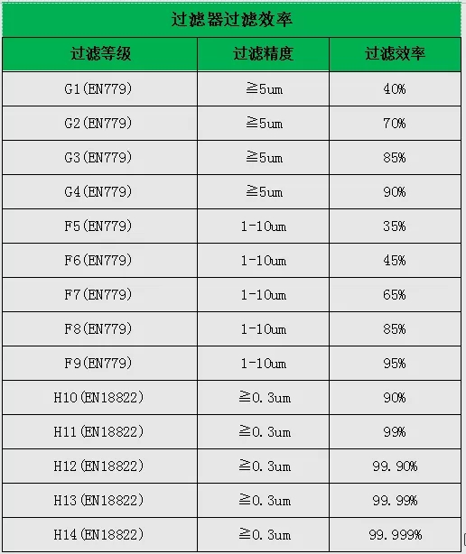 32.不同等級(jí)新風(fēng)過濾器的過濾效率如何?