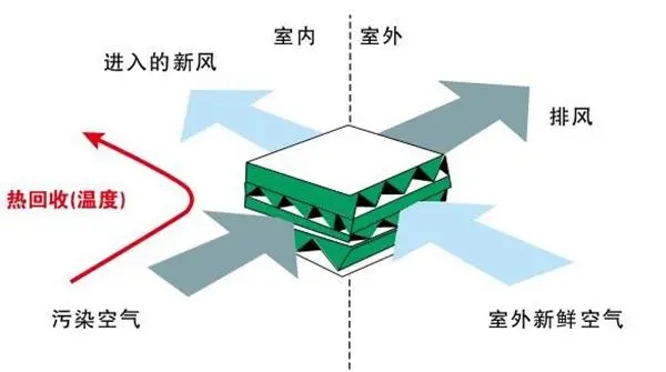 寒冷的室外空氣在冬天進(jìn)入房間,而溫暖的室內(nèi)空氣則在室外排出。夏天,外面的熱風(fēng)進(jìn)入房間,家里的冷空氣從房間里排出。換熱器的功能是回收冬季(夏季)房間內(nèi)排除的冷熱空氣能量,以預(yù)熱(冷)新鮮空氣。當(dāng)這兩種流體在熱交換中傳遞時,它們會交換熱量,但不會混合在一起。