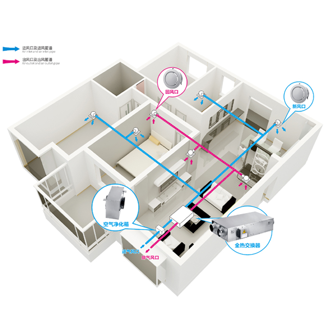 新風(fēng)系統(tǒng)能向室內(nèi)源源不斷提供新鮮空氣,每天24小時(shí)源源不斷為室內(nèi)提供新鮮空氣,一次投資,持久使用。