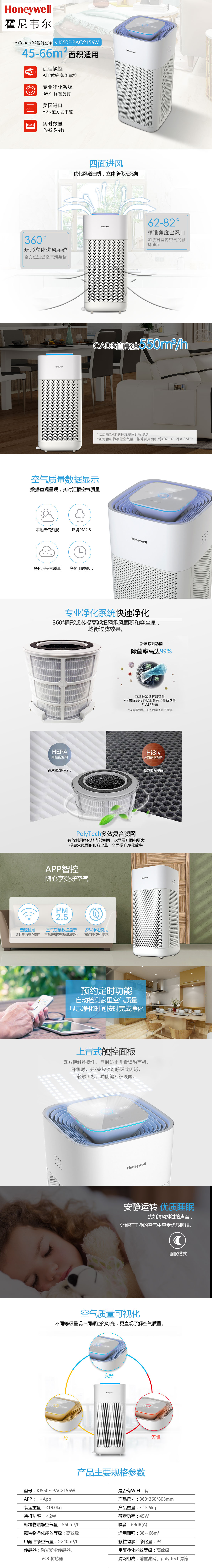 室內(nèi)空氣品質(zhì)專家霍尼韋爾傾心打造!霍尼韋爾空氣凈化器, 全效去除室內(nèi)空氣中99%的PM2.5顆粒、異味、TVOC有害氣體和甲醛。固態(tài)顆粒物潔凈空氣量(CADR)可達(dá)到800CMH,輕松凈化80m2大空間...